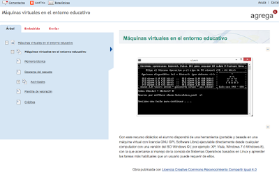 Desde el proyecto AGREGA 2 y la red de recursos educativos en abierto PROCOMÚN contamos con un recurso educativo que ofrece al alumno una herramienta portable, y basada en una máquina virtual con licencia GNU GPL Software Libre, ejecutable directamente desde cualquier computador con una versión del SO Windows ©, para el aprendizaje de los fundamentos de los comandos de consola básicos de Linux.Página de descarga en "Agrega 2"